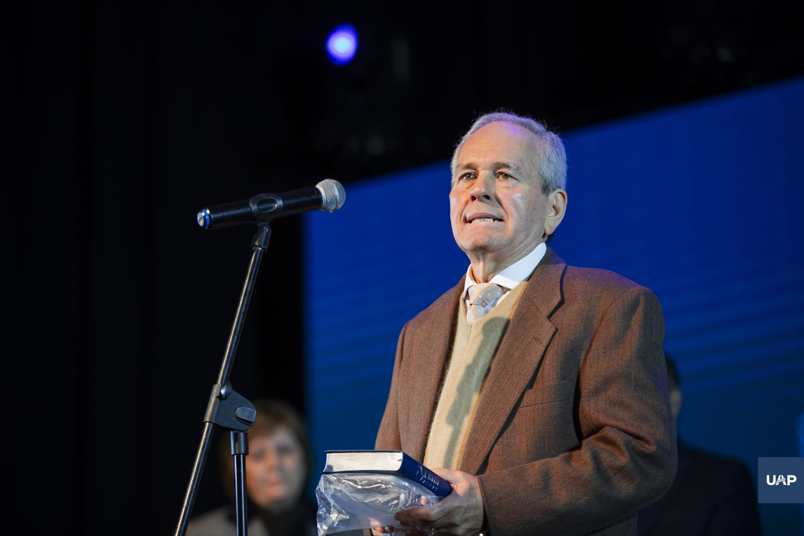 Dr. Haroldo Brouchy en su mensaje de agradecimiento al reconocimiento otorgado por la UAP, por su trayectoria de docencia y dirección del ACA.