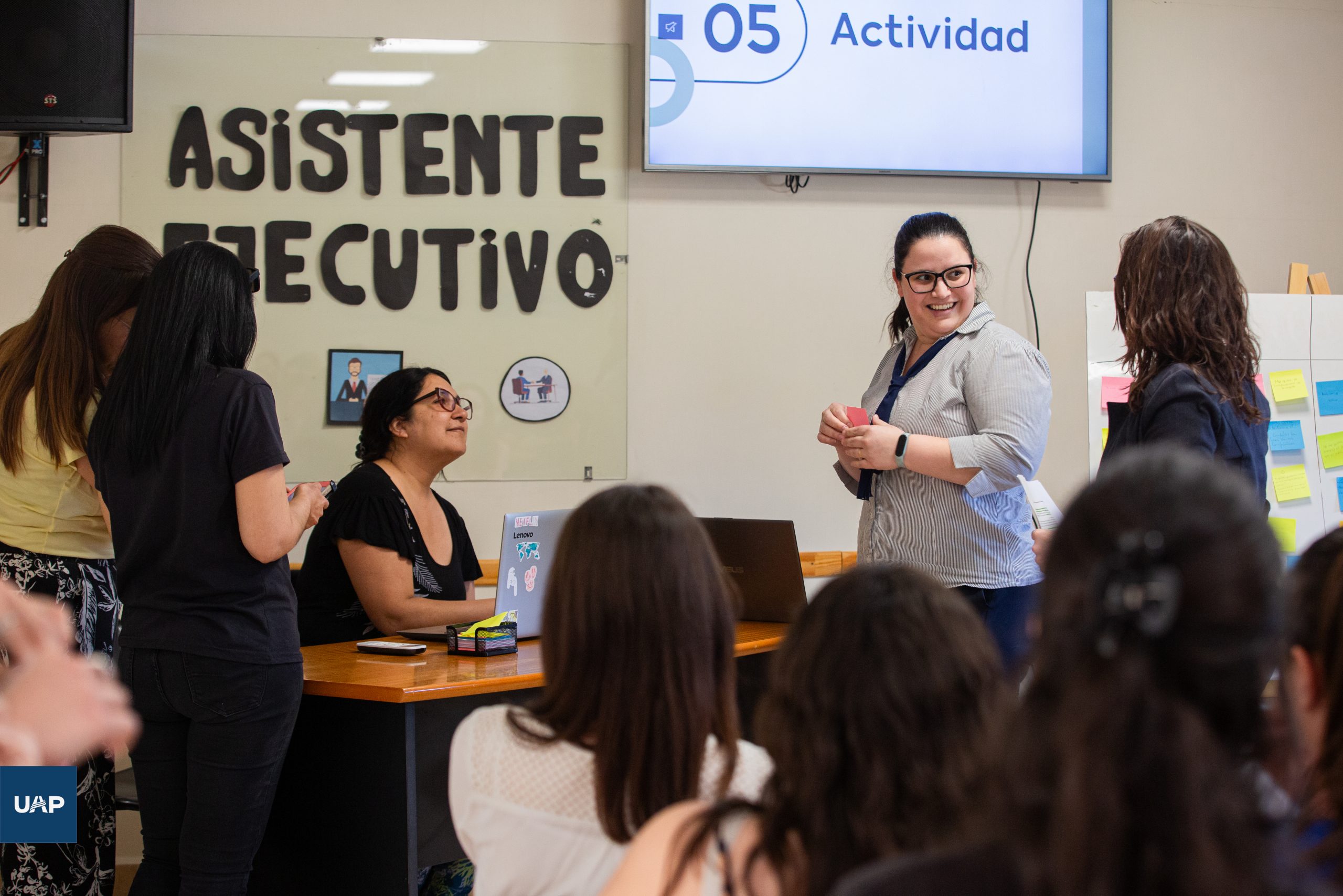 UAP Noticias tuvo la oportunidad de conversar con la Mag. Cristina Jones, directora de la carrera de Asistente Ejecutivo, y con Tania Tapia, alumna de segundo año, quien participó activamente en la organización del evento.